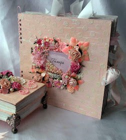 В декорировании дисплея для альбомов по мимо цветов я использую пуговки, железные украшения,булавки, вырубку и т.д.