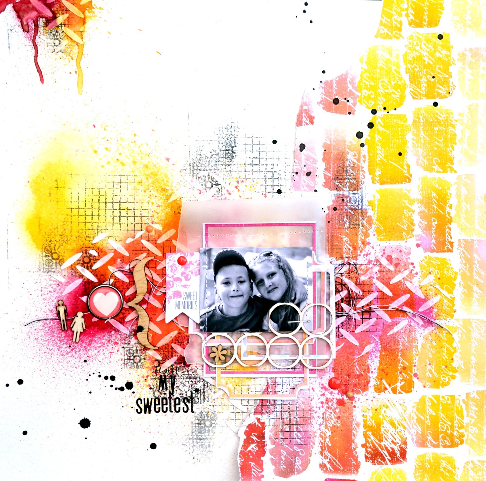 Сегодня в рубрике экспресс-задание я, Таня Скрап-Мотылек, предлагаю сделать вам страничку, при этом обязательно использование фонового штампа и клякс(брызг) и цветов. Фоновый штамп любой-текстовый, передающий фактуру, клетка, кружочки, соты, шеврон...что угодно. Цветы любые: бумажные, тканевые, чип.